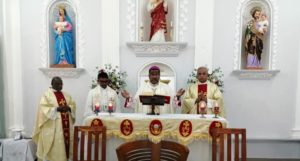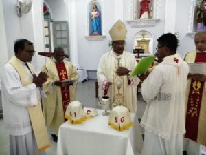 ஆயர் இல்லத்தில் இருக்கும் குருக்கள் இணைந்த திருத்தைல மந்திரிப்பு திருச்சடங்கு